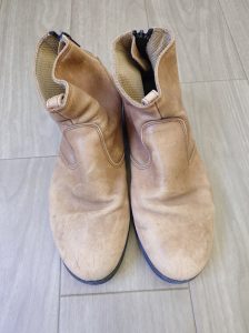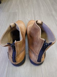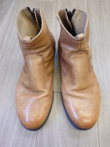 TAKAIバイクブーツのシューケアでご来店いただきました。久々に履いたらきつくて痛い、とのことでしたのでフィッティングチェックを行った所、小趾が当たっているようでした。私も経験がありますが、小趾が当たって痛い場合は履きならしてもほとんど革が伸びません。無理をしてそのまま履いていると革ではなく小趾が変形し、内反小趾になる可能性があります。お時間は頂けるということでお預かりして幅伸ばし調整も承りました。