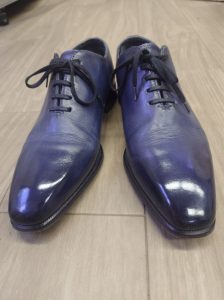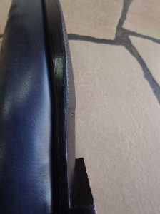 こちらの靴は革底の外側が立ち上がっていて、前回の修理と同じように繋ぎ目を直線にしてしまうと非常におかしなことになってしまいます。
