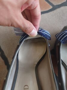 裏面にパッドを付けたため、見た目に変化はありません。パッドは接着した後、履き口部分の縫い目を利用して縫い付けました。お渡しの際に試していただきましたが、踵がパカパカ動くことなく履けるようになりました!