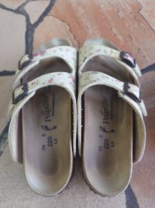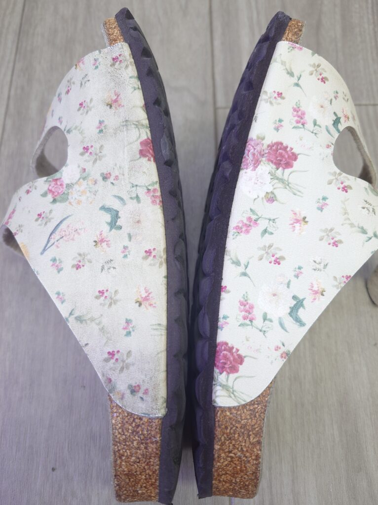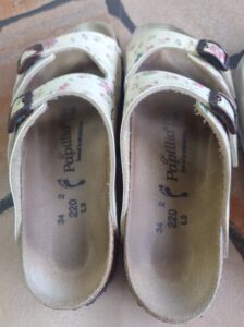 修理は、アッパーとフットベッドの間の剥がれ。ビルケンはフットベッドの素材に接着剤が付きにくいため、よく剥がれているのを見かけます。メーカーさん、改善してほしいなぁ…