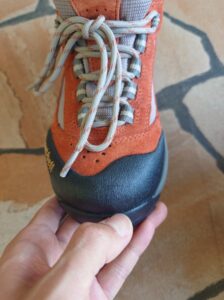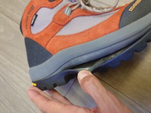 靴が届いたらソールが剥がれないかチェックすることも重要です。ハイキング中にソールがパカッと剥がれてしまったら…不便なだけで済めば良いですが場合によっては命に関わりかねません。アウトソールのゴムも劣化すると硬くなり、割れたりグリップがなくなって滑ってしまうため注意が必要です。