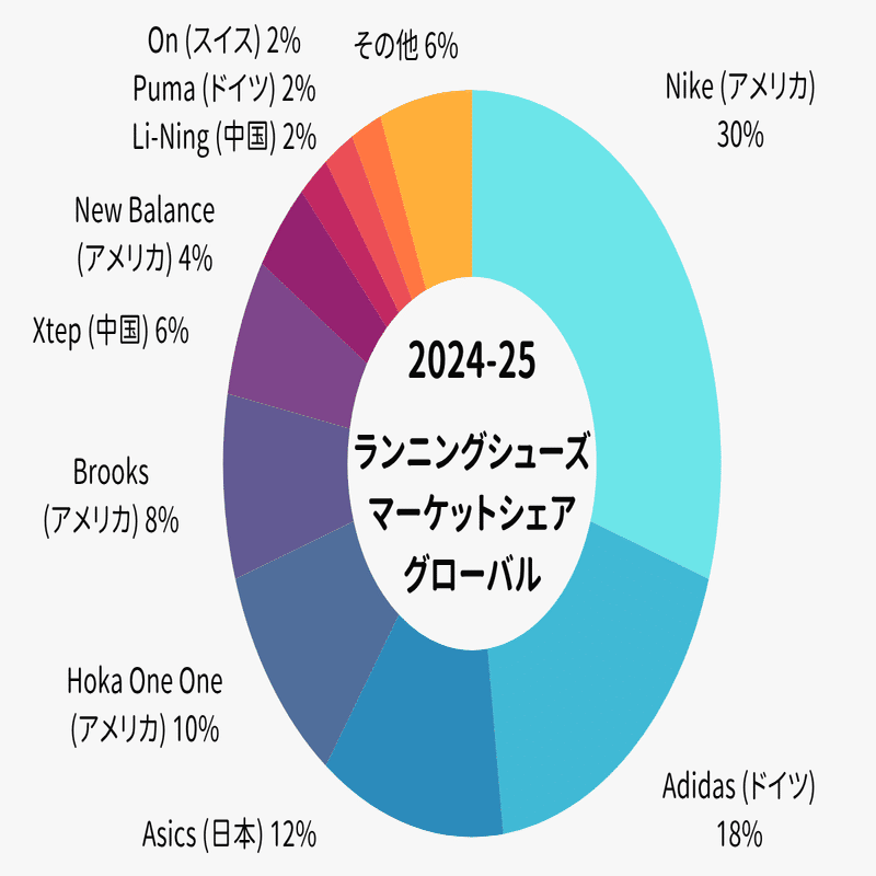 【2024-25年版】世界のランニングシューズ・マーケットシェア(推定)