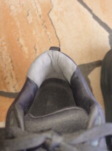 しかしながら、その履き口のスポンジが災いして、一度でも紐を緩めず無理やり履こうとすると容赦なく履き口が潰れてしまいます。その為、HOKAに限った話ではないですが、靴を履く際は必ず紐をしっかり緩めて靴ベラを使用し履き、踵を合わせたうえでしっかり紐を結ぶ…HOKAがどれだけ良い靴でも、これを守って頂かないと意味がありませんのでぜひ皆さんご注意ください。