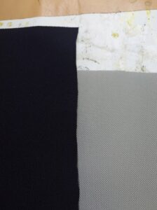 その後、新しいライニングを縫い付け、穴が開いた部分にクッションを足しておきます。ライニングの素材は何でも良いとのことでしたので、当店に在庫があるマイクロスエード(グレー)を使用しました。この素材、耐久性が高くとても良い素材なのですが、黒がありません…後で黒の素材も用意しようと思います。