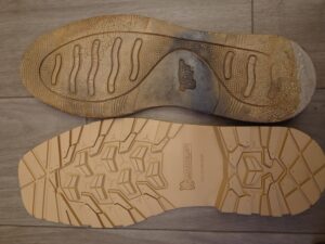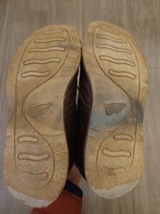 ソールのゴムが劣化し、ひび割れが無数に出来ています。