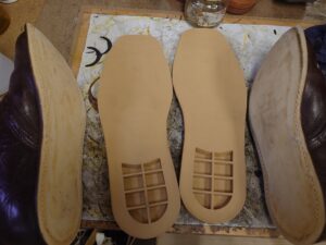 ソールを剥がし、古いノリを取り除いてからミシュランソールを貼り付け、仕上げます。