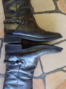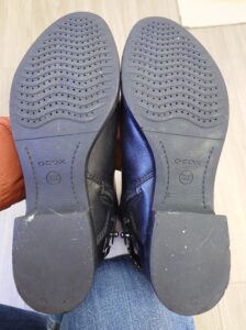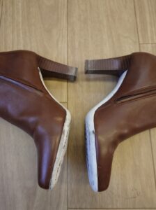 まずはGEOXロングブーツ。しばらく履いていなかったとのことで、ソールが劣化してパキパキに割れてしまっています。お客様によると、最近はロングブーツがトレンドとのことで、新しく購入するより修理を選択してくださいました。(実際他にもロングブーツ修理のご依頼が来ています)