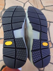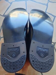 同じ形状のソールだとかかと部分のアッパー革が地面に近く削れやすい為、5mm厚くしてほんのりフレア形状にしました。軽量素材で履き心地も良さそうです。