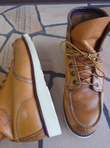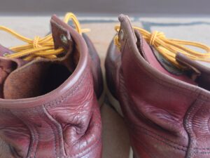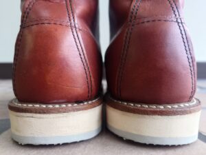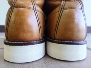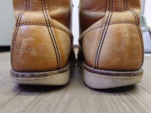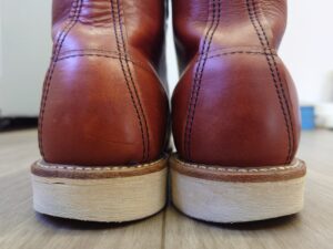 REDWING修理で調べてみると、大抵ソールを交換する事例が載っていますが、今回は踵部分がやや削れているのみで、ソール交換するほどではありません。