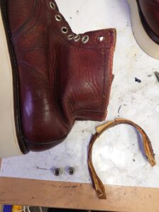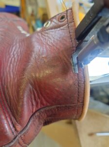 ソール交換は先程と同様、履き口の革は同じ色の革が無かったため、見えるところだけ色を付けて合わせました。